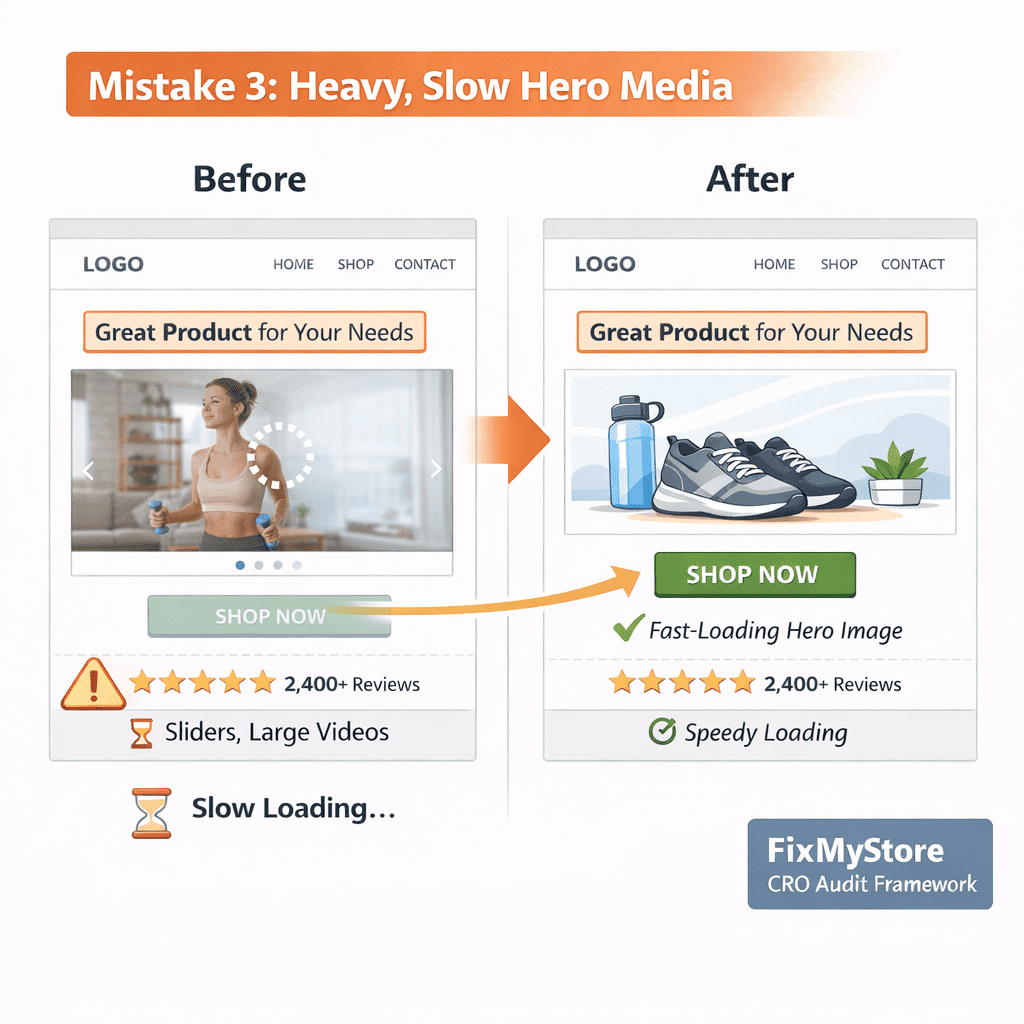 Why it hurts: Slow above-the-fold load increases bounce and hurts SEO metrics like Largest Contentful Paint (LCP).