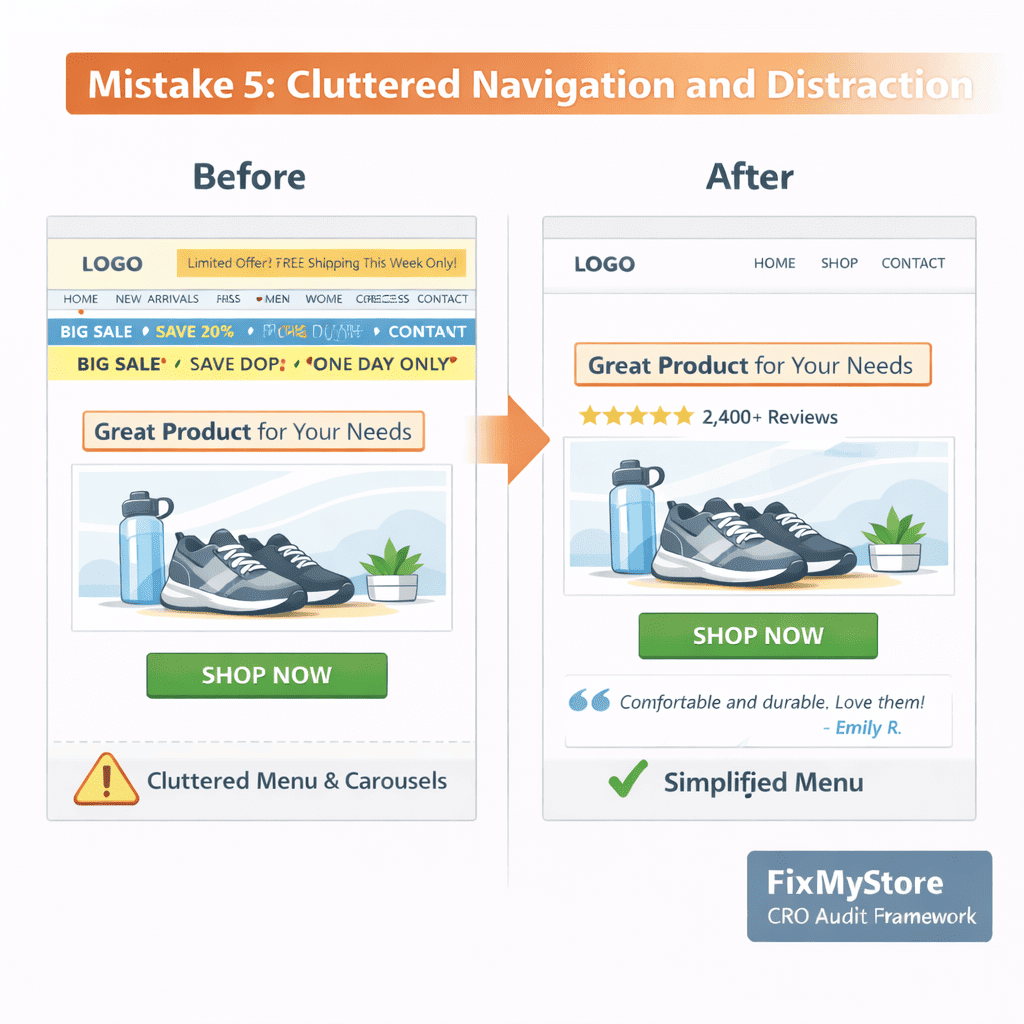 Problem: Too many menu items, banners, or auto-rotating carousels stealing attention.