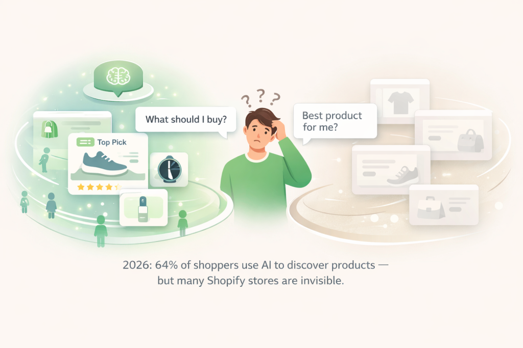 In 2026, 64% of online shoppers report using AI tools to discover and buy products, yet an overwhelming number of Shopify stores remain invisible to the very systems where people are now asking “What should I buy?” instead of “What should I Google?”