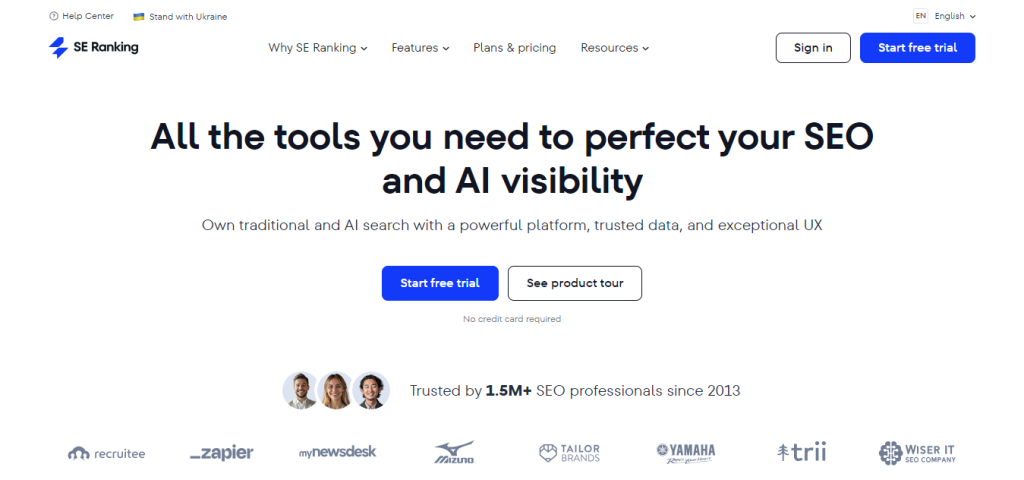 SE Ranking’s platform incorporates AI visibility into its existing SEO dashboard, making it a strong pick if you already use it for keyword tracking. It tracks: