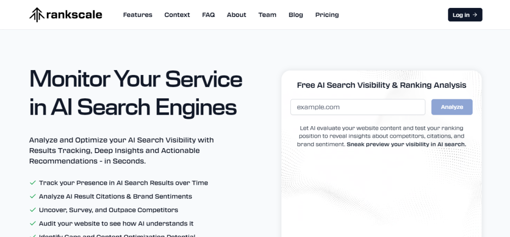 Rankscale AI offers daily tracking of brand presence and citations across leading AI platforms including ChatGPT, Perplexity, and Google AI Overviews. Its strength lies in frequent updates and accessible dashboards.
