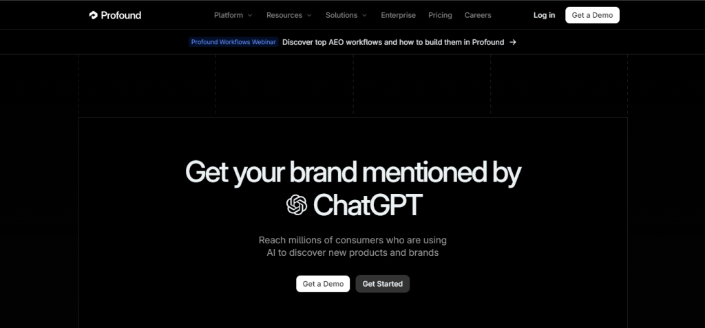 Profound AI provides rich dashboards for large brands or agencies, offering broad coverage across multiple AI platforms, share‑of‑voice analytics, and deep trend reporting. It’s ideal if your visibility strategy spans many regions, products, or AI engines.