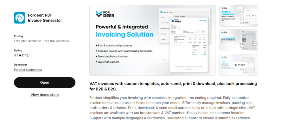 6. Fordeer PDF Invoice Generator: Best Value for Growing Stores