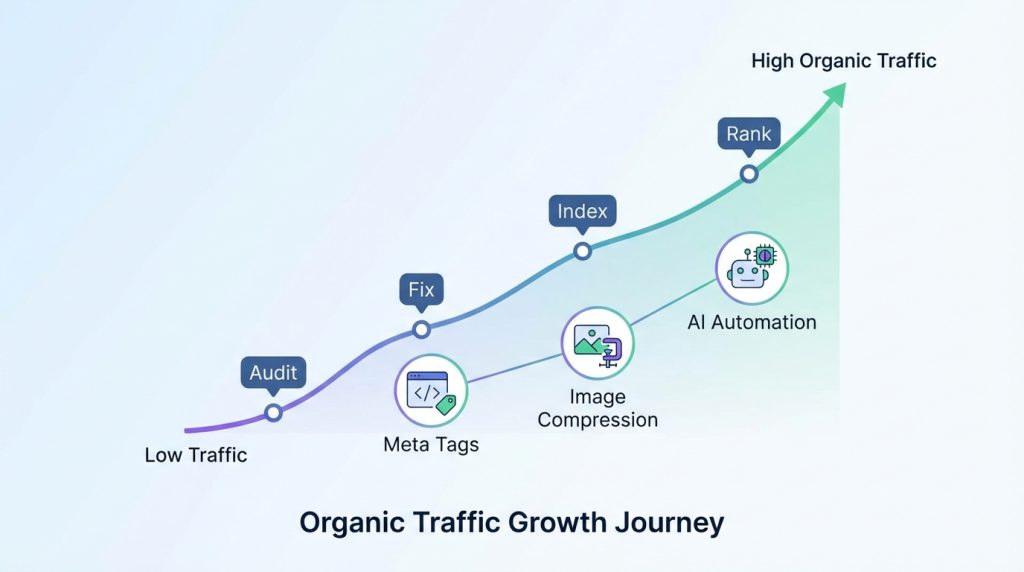 Many merchants report noticeable improvements in traffic within weeks after fixing technical issues like missing meta tags and uncompressed images.