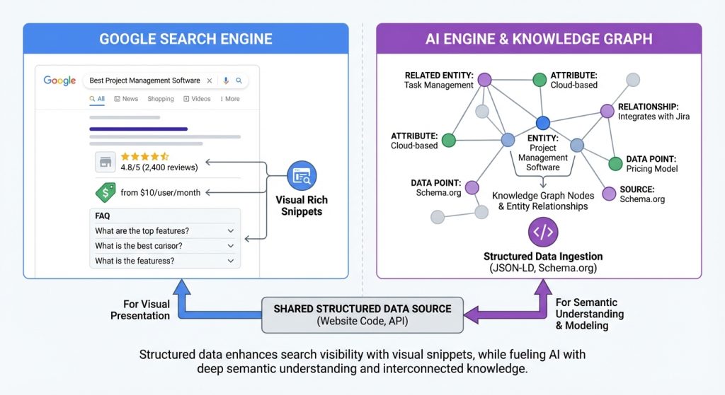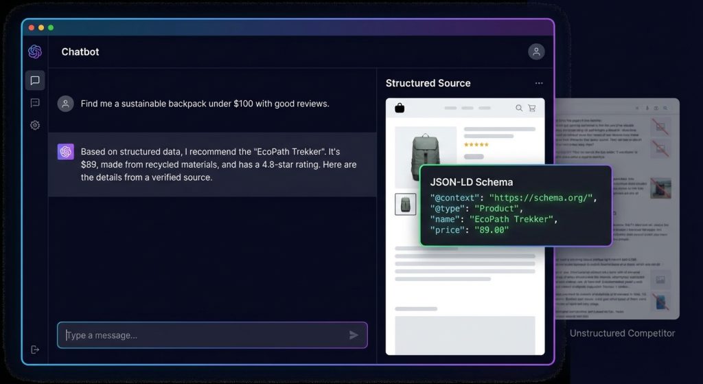 Benchmarks show structured product pages are cited 2–3x more often in AI results than unstructured ones.